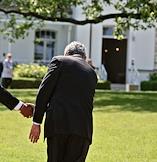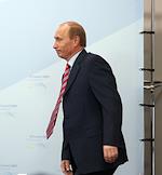 Саммит "G8" ("Большой восьмерки"). Президент России Владимир Путин (слева) и пресс-секретарь Президента России Алексей Громов (справа) после пресс-конференции по итогам саммита "G8" с лидерами ряда африканских стран.