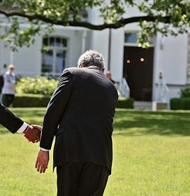 Саммит "G8" ("Большой восьмерки"). Президент США Джордж Буш перед началом совместного фотографирования глав "G8" в комплексе Курхаус.