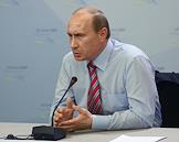 Саммит "G8" ("Большой восьмерки"). Президент России Владимир Путин во время пресс-конференции по итогам саммита "G8" с лидерами ряда африканских стран.