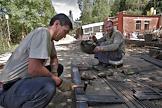Гастарбайтеры на стройке дома в Брюсове переулке.