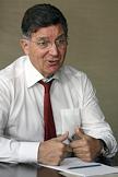 Председатель правления "МДМ-банка" Мишель Перирен во время интервью в своем рабочем кабинете.