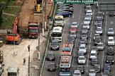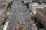 Вид на Ленинградский проспект из окна института "Гидропроект". Автомобильный поток и зона реконструкции шоссе.