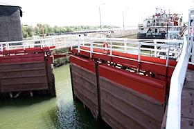 Кочетовский гидроузел в Семикаракорском районе Ростовской области. Корабли во время шлюзования.