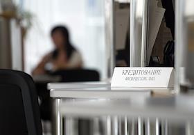 Табличка "Кредитование физических лиц" в зале работы с клиентами автозаводского филиала банка "Возрождение".