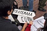 Театрализованная акция протеста под лозунгом "Сочи - победил, люди - проиграли!", организованная коалицией "Против Олимпиады 2014 в Сочи", прошла на площади Маяковского.
