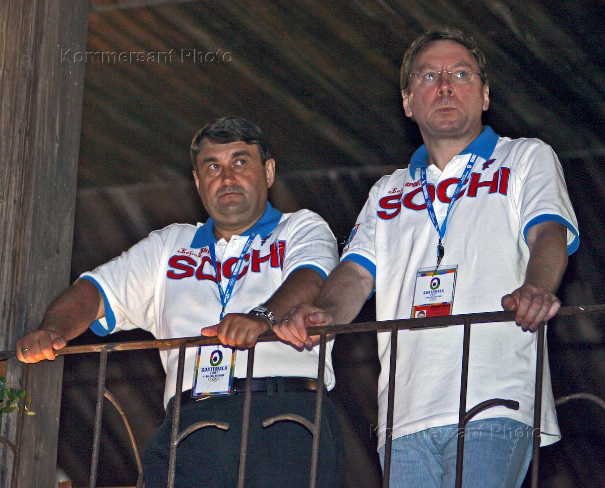International Olympic Committee (IOC) 119th session. Russian Vice Prime Minister Alexander Zhukov, left, and Russian Bidding Committee Sochi-2014 General Director Dmitry Chernyshenko, right, are shown during press conference.