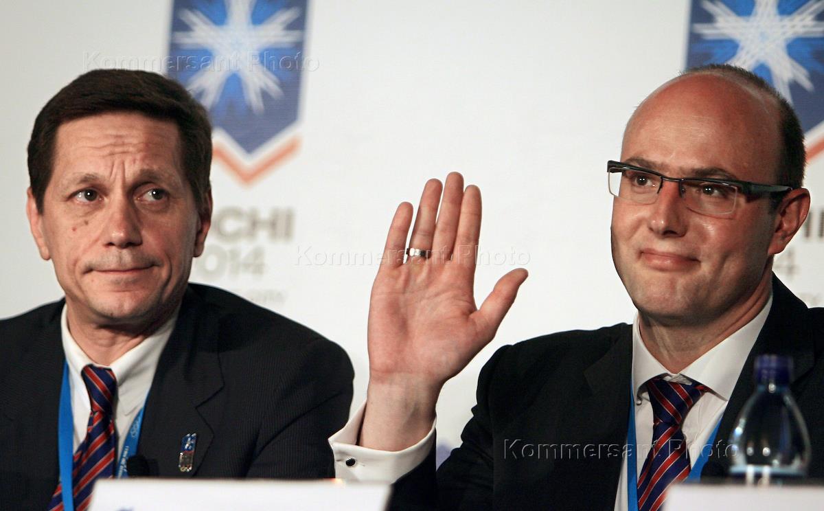 International Olympic Committee (IOC) 119th session. Russian Vice Prime Minister Alexander Zhukov, left, and Russian Bidding Committee Sochi-2014 General Director Dmitry Chernyshenko, right, are shown during press conference.