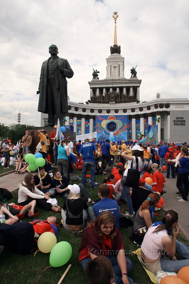 Праздник, посвященный 50-летию проведения VI-го Всемирного фестиваля молодежи и студентов в Москве. Праздничное шествие прошло по проспекту Мира от Сухаревской площади до ВВЦ .