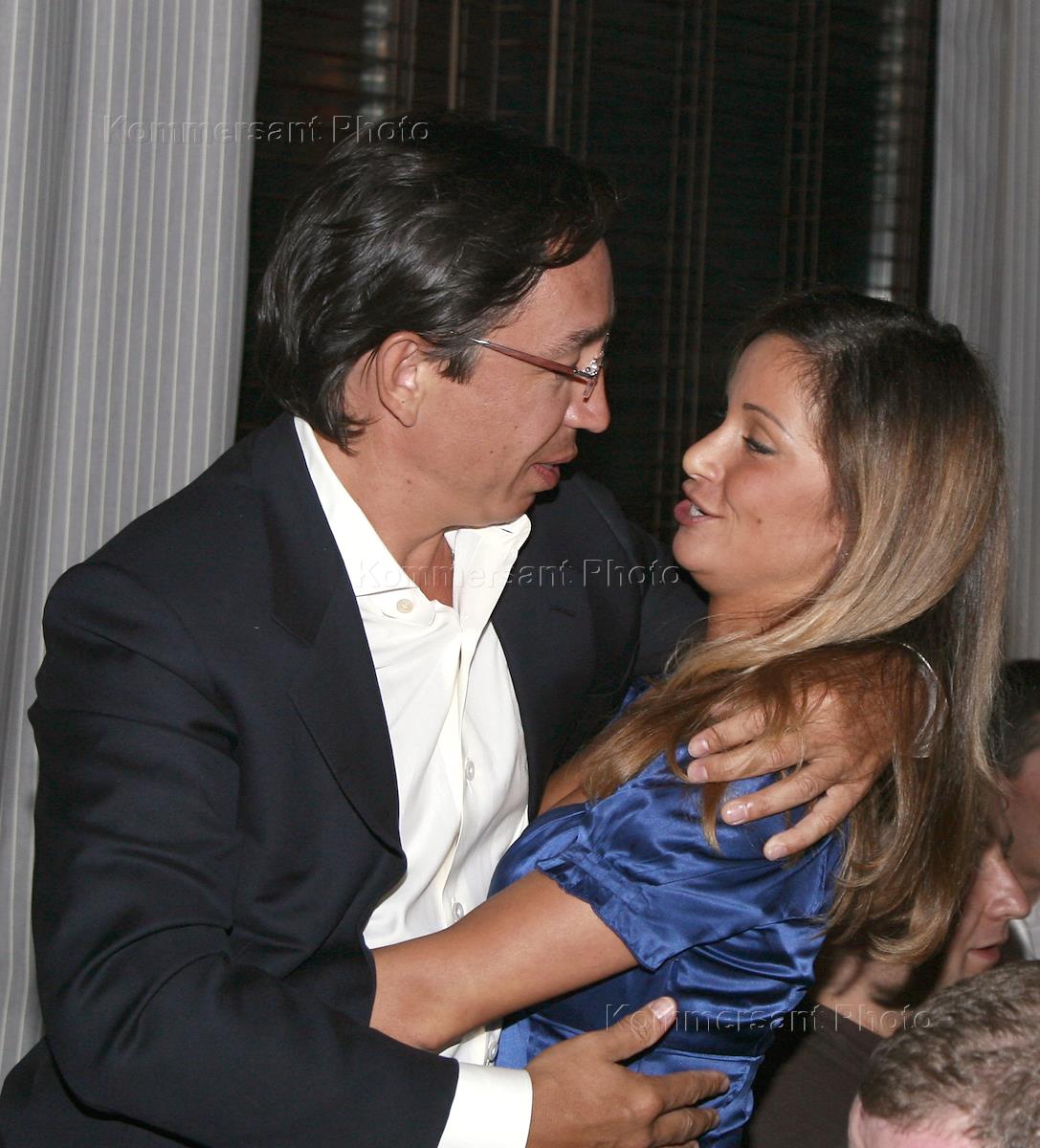 Businessman Boris Davletyarov, left, and singer Olga Orlova, right, at presentation of new project of the Russian Olympic ice skating champion Evgeny Plyushchenko at the GQ Bar.