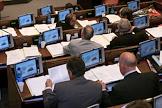 Заседание Совета Федерации России. На столе лежит папка с "материалами к заседанию Совета Федерации Федерального собрания Российской Федерации".