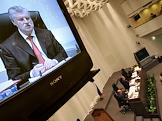 Председатель Совета Федерации (СФ) России Сергей Миронов (на экране) на заседании Совета Федерации.
