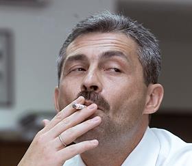 Unified Energy System of Russia Vice Chairman Andrei Rappoport smokes a cigarette during an interview at his study.