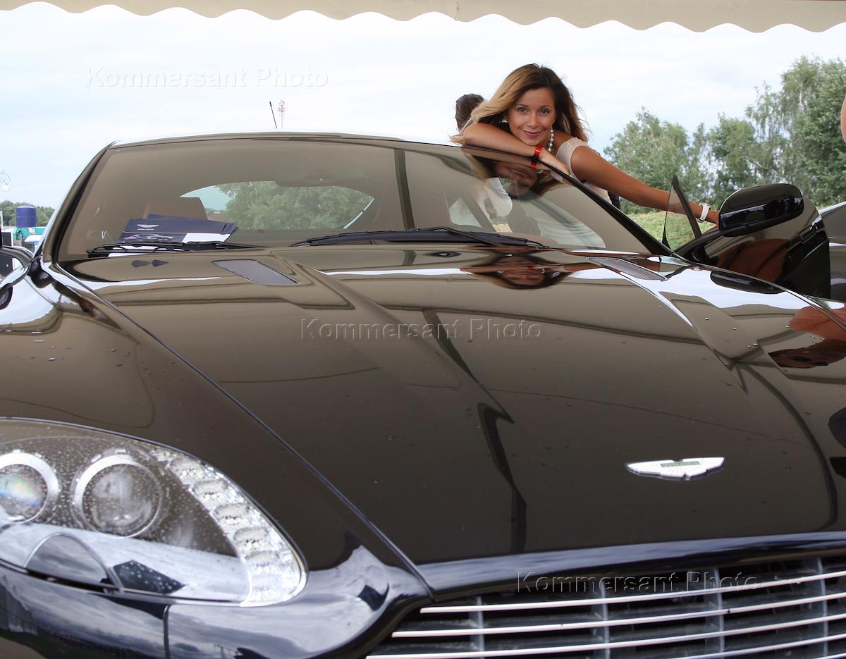 Певица Ольга Орлова в салоне автомобиля "Aston Martin V8 Vantage Roadster" во время финала ежегодного летнего кубка "Dewar's Russian Polo Cup 2007". Соревнования прошли в Русском Поло Клубе на территории Конно-спортивного комплекса (КСК) "Отрада".