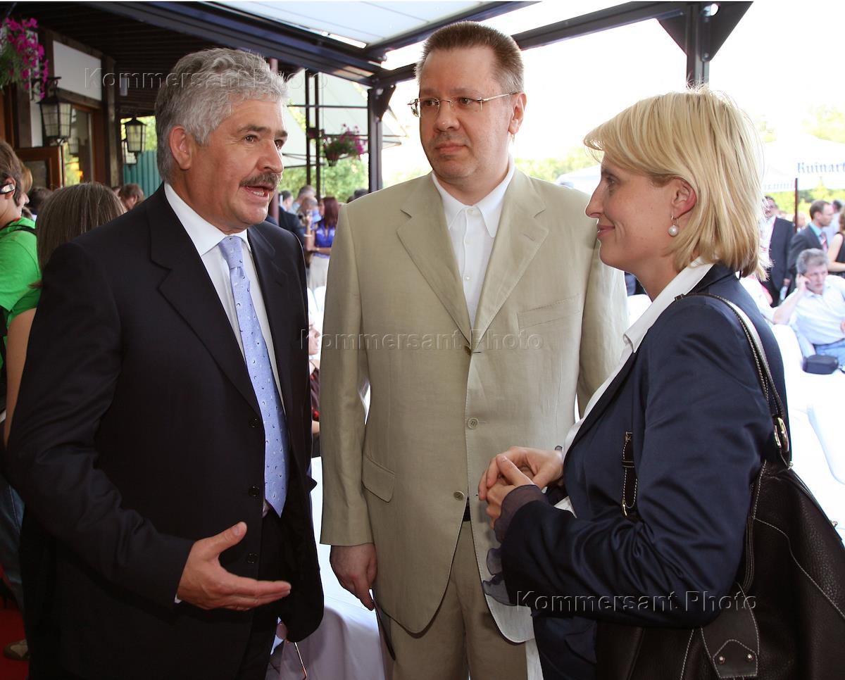 Periodic Press Publishers Guild President Leonid Makaron, left, Seven Days Publishing House General Director Dmitry Biryukov, center, and RIA Novosti Chair of the Board Svetlana Mironyuk, right, attend Media Manager-2007 Award.