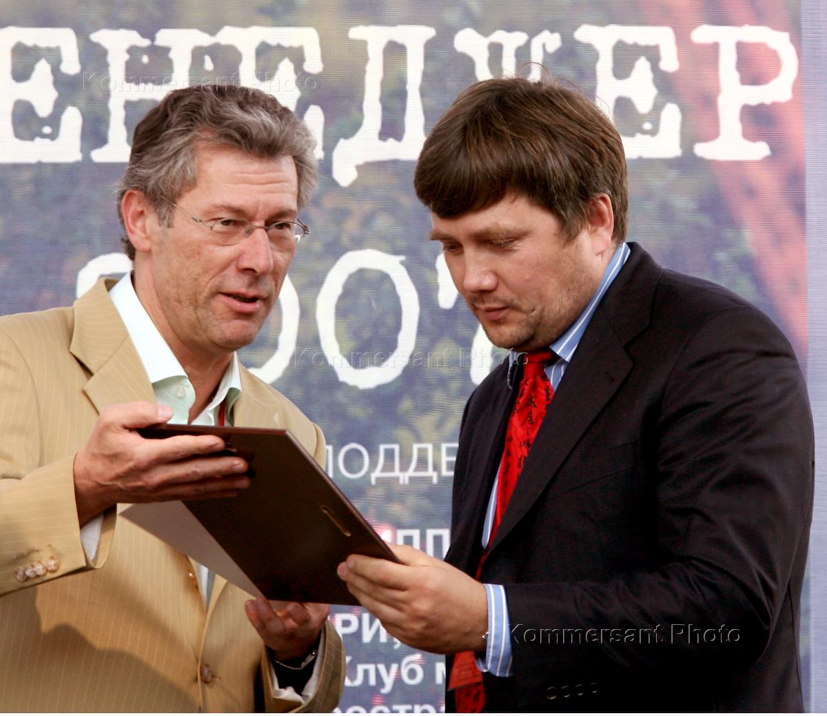 Президент ЗАО "РГ Витрина А" Вадим Куликов (справа) на церемонии вручения премии "Медиа-менеджер России 2007". Церемония прошла в городском Гольф Клубе.