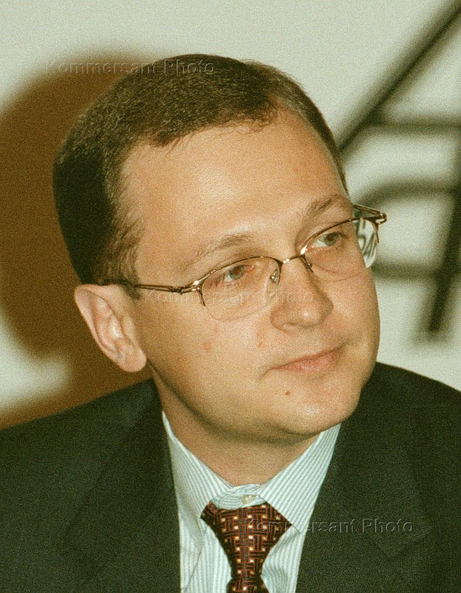 Former Russian premier minister Sergei Kiriyenko at a press conference at the information agency "Interfax".