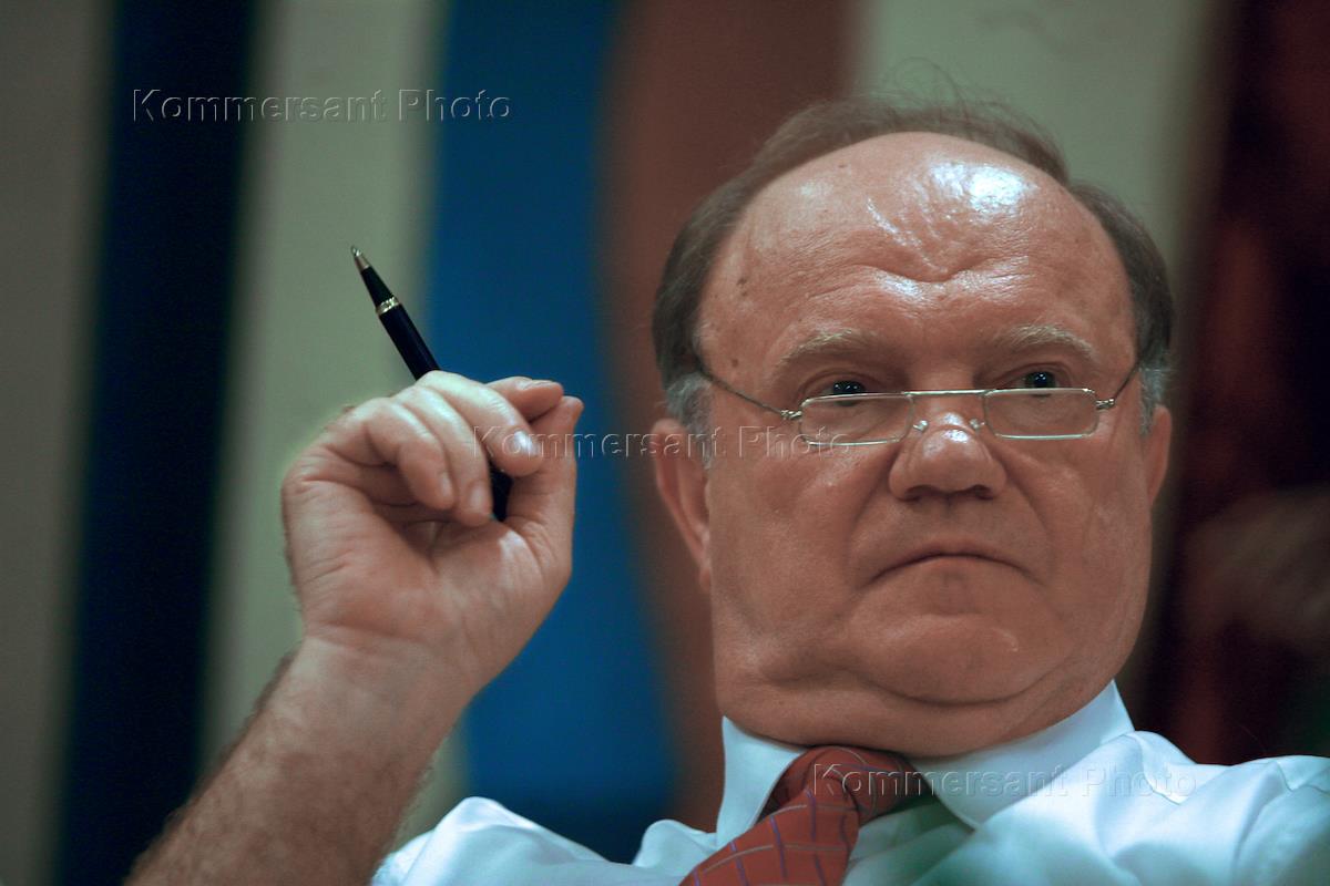 Leader of the Russian Communist Party (KPRF) Gennady Zyuganov, right, at a сonference of Moscow KPRF branch. The сonference took place at the Sholokhov Library.