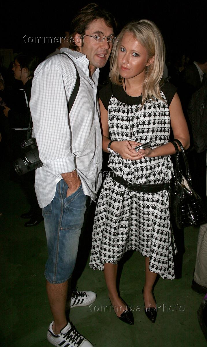 Телеведущие Андрей Малахов (слева) и Ксения Собчак (справа) на премьерном показе новой коллекции модельера Валентина Юдашкина, посвященной эпохе английской королевы Елизаветы I. Показ прошел в 1-м павильоне киностудии "Мосфильм".