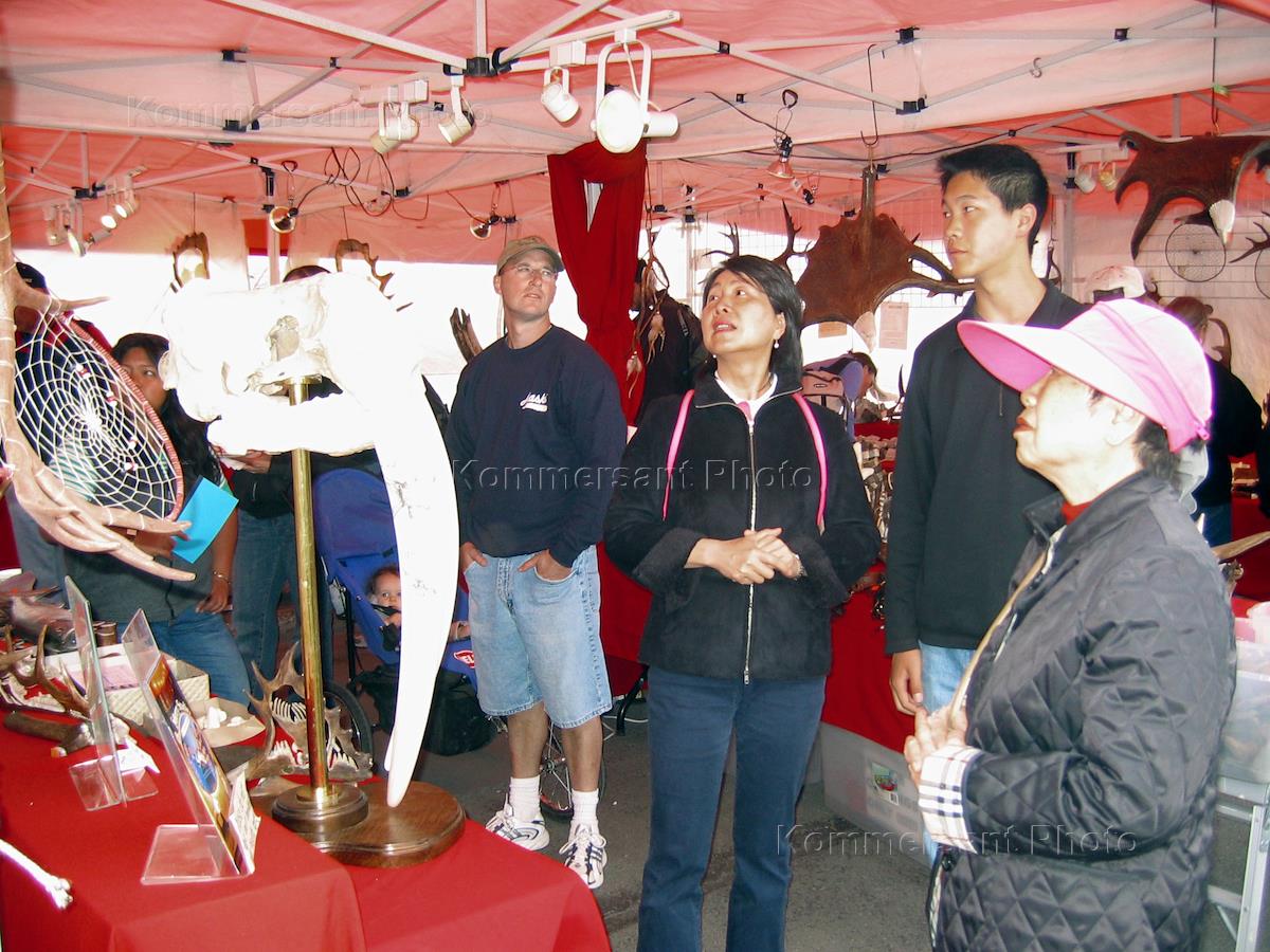 Туристы на воскресной ярмарке ремесел в Анкоридже.