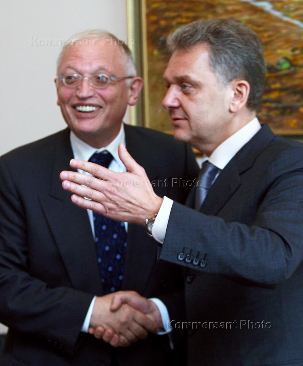Russian Industry and Energy Minister Viktor Khristenko is shown during meeting with European Commission Vice President, Commissioner for Enterprise and Industry Gunter Verheugen.