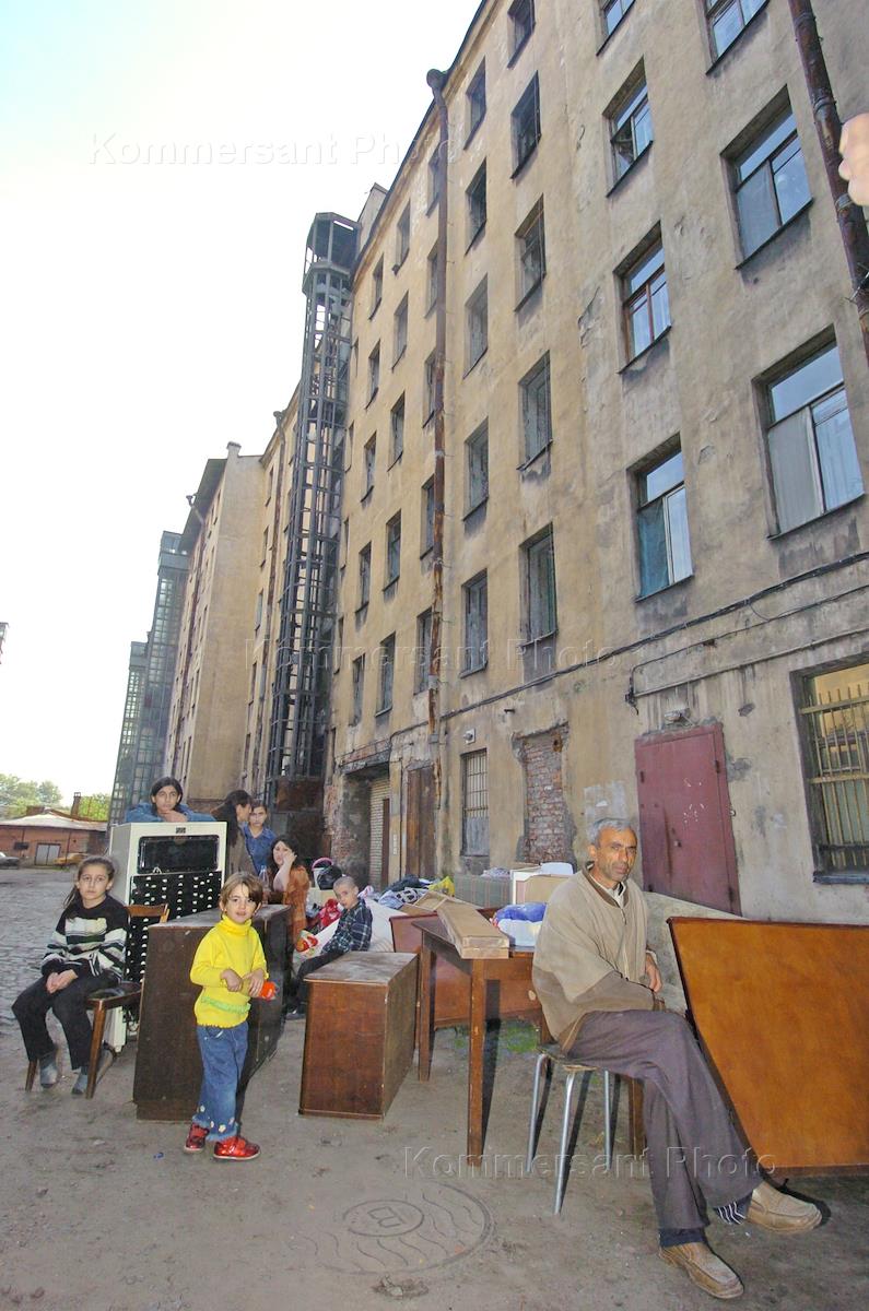 Принудительно эвакуированные семьи нелегальных мигрантов, заселившихся в квартале подлежащему сносу у здания в котором 5.30 утра произошло обрушение межэтажных перекрытий в доме 11 на улице Шкапина.