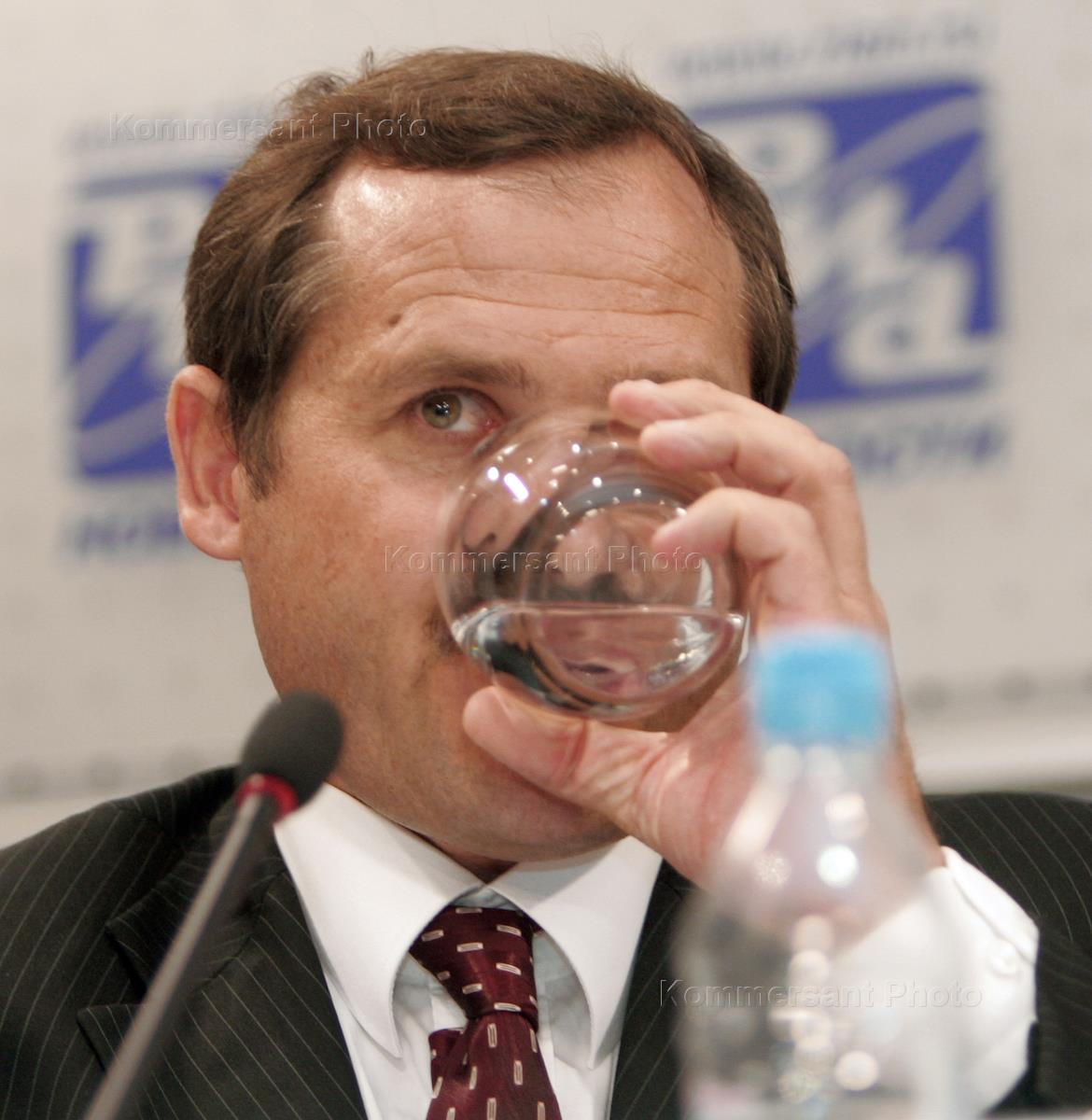 Russian State Duma Budget and Tax Committee member Andrey Samoshin, right, is shown after press conference devoted to Moscow self-administration.