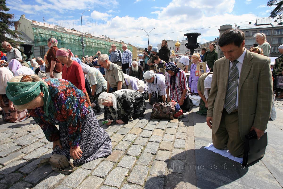 Prayer standig in memory of saint royal martyrs organized by Orthodox Gonfaloniers Union, Orthodox Brotherhoods Union and Christian Rebirth Union has passed at Slavyanskaya square.