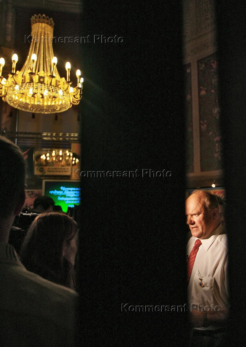 Russian Communist Party (KPRF) leader Gennady Zyuganov is shown at 'Youth starting to sing a song of friendship' exhibition opening. Exhibition devoted to 50th anniversary of 7th Youth and Students World Festival.