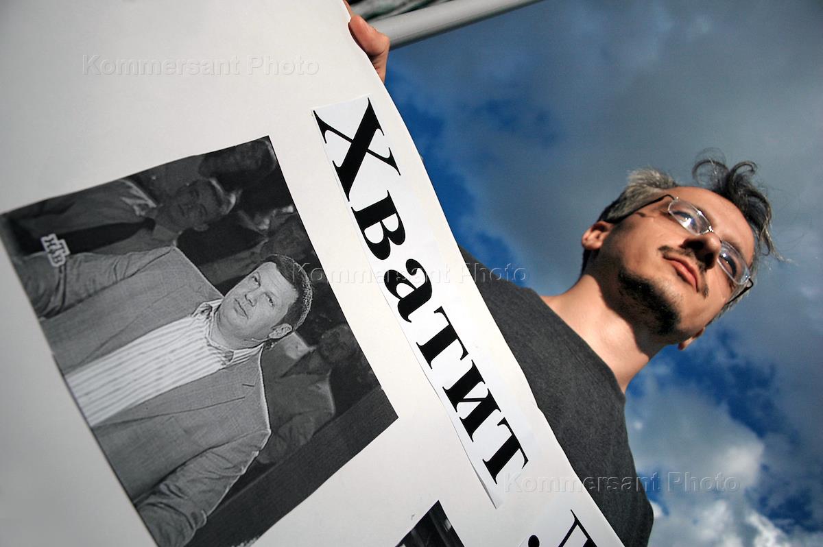 People Democratic Union act of protest against state propaganda and censorship in mass media headlined 'No censorship in mass media! Throw away your TV!.