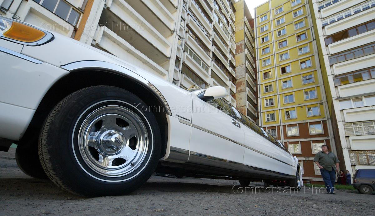 [English translation in progress (2)] The wedding limousine "Lincoln" costs in a court yard of the multi-storey house.