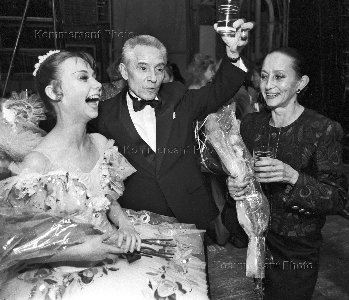 Хореограф Юрий Григорович (в центре) и балерина Наталья Бессмертнова (справа) в Государственном Академическом Большом театре России.