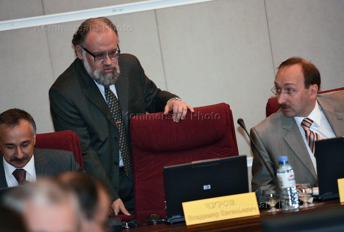Russian Central Electoral Commission (CIK) Chairman Vladimir Tchurov, 2nd left, and CIK member Igor Fedorov, right, are shown at the CIK session.