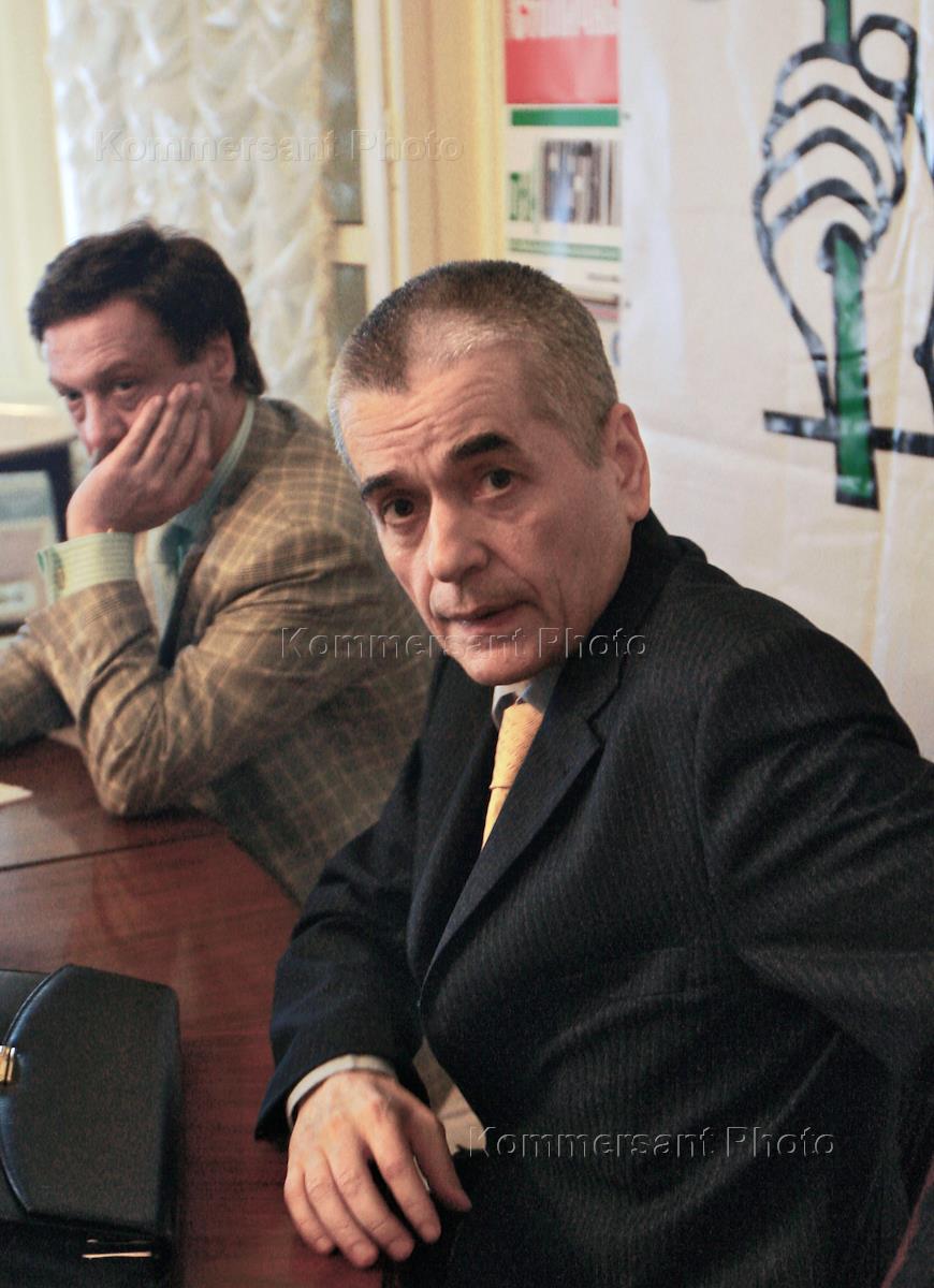 Полномочный представитель Правительства России в высших судебных инстанциях Михаил Барщевский (слева) и руководитель Федеральной службы по надзору в сфере защиты прав потребителей и благополучия человека Геннадий Онищенко (справа) на заседании "Круглого стола". "Круглый стол" на тему: "Повышение качества жизни: миссия выполнима?" прошел в Центральном Доме журналиста.