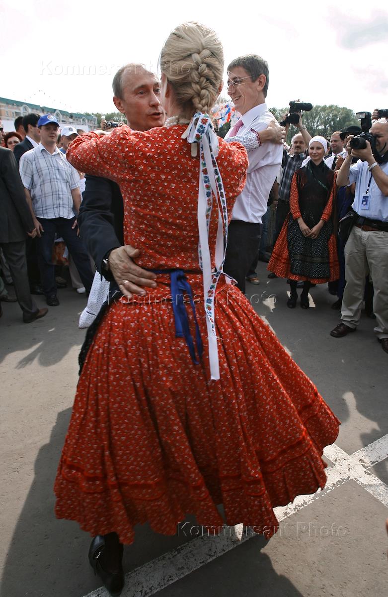 Президент России Владимир Путин (справа) и президент Финляндии Тарьей Халонен (слева) во время торжественной церемонии открытия Международного фестиваля финно-угорских народов.