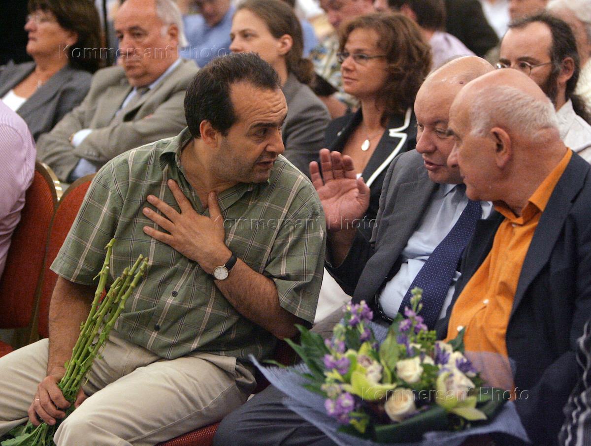 Лидер движения "Народно-демократический союз" (НДС) Михаил Касьянов (слева) и директор Института экономики переходного периода Егор Гайдар (справа) на юбилее председателя Хельсинкской группы (МХГ) Людмилы Алексеевой в гостинице "Космос".