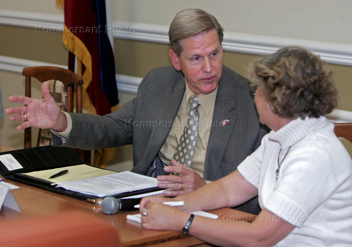 Президент компании "ЭксонМобил Россия" Бен Хейнз (слева) на заседание рабочей группы Консультативного совета по иностранным инвестициям в России "Повышение эффективности использования природных ресурсов". Заседание прошло в министерстве природных ресурсов России.