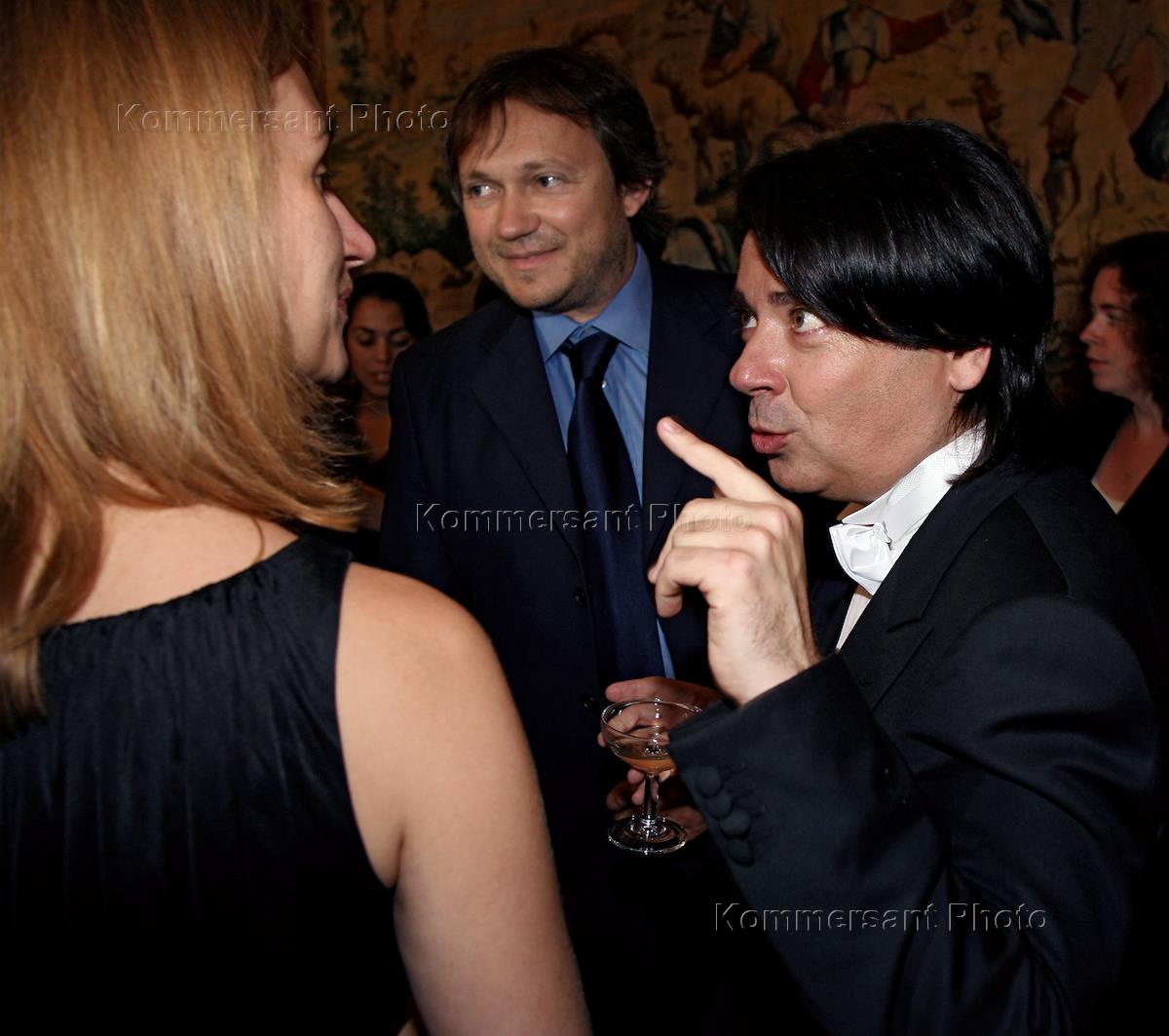 Заместитель руководителя Администрации Президента России Джахан Поллыева (в центре) и певица Алла Пугачева (справа) во время церемонии вручения модельеру Валентину Юдашкину (слева) ордена Французской Республики. Церемония прошла в посольстве Франции.