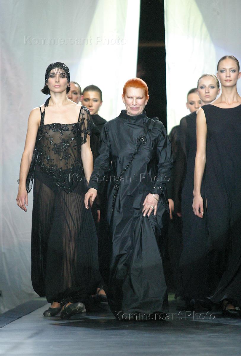 Fashion designer Tatyana Kotegova, center, attends her new collection show.