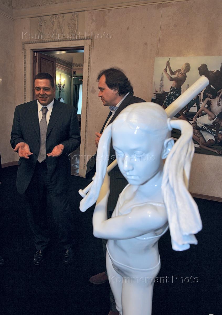 Старший партнер "Fleming Family & Partners" Марк Гарбер (слева) и совладелец "Ост Вест Груп" и председатель совета директоров ОАО "Волга" Шалва Бреус (справа) на церемонии открытия выставки группы "IES+P" (Избранное) в галерее "Триумф".