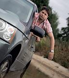 Актер Виктор Логинов во время тест-драйва на автомобиле "Range Rover" на территории "Крокус Сити Молл".