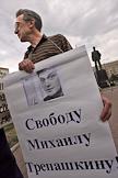 Участник пикет Антивоенного клуба и Комитета антивоенных действий, посвященного политзаключенному адвокату Михаилу Трепашкину, дело которого в этот день рассматривалось в Европейском суде по правам человека. Пикет прошел у памятника Владимиру Маяковскому на Триумфальной площади.