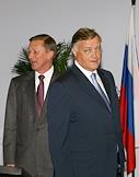 Первый заместитель председателя Правительства России Сергей Иванов (слева) на презентации Центра инновационного развития ОАО "РЖД" в здании Рижского вокзала.
