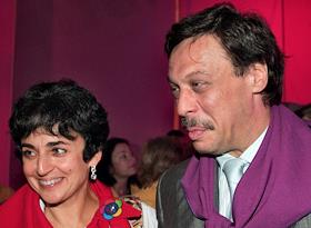 Полномочный представитель Правительства России в высших судебных инстанциях Михаил Барщевский с супругой Ольгой Баркаловой во время праздника "ГУМ - Артиколи - Фонтан", приуроченного к 50-летию фестиваля молодежи и студентов в Москве (1957г.) и посвященного открытию отреставрированного ГУМовского фонтана и магазина парфюмерии и косметики "АРТИКОЛИ". Праздник прошел в ГУМе и на Красной площади.