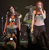 Солистки группы "Тату" Юля Волкова (в центре) и Лена Катина (справа) во время выступления на концерте группы в клубе "Б1 Максимум".