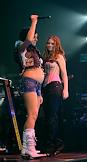 Солистки группы "Тату" Юля Волкова (справа) и Лена Катина (слева) во время выступления на концерте группы в клубе "Б1 Максимум".