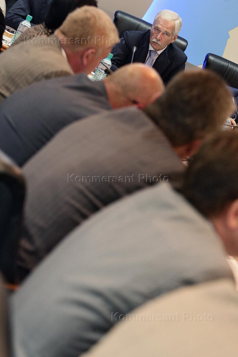 Член Высшего политического совета партии "Единая Россия", председатель Государственной Думы России Борис Грызлов (справа) на встрече с представителями экспертных советов проекта "Профессиональная команда страны". Встреча прошла в информационном центре ЦИК партии "Единая Россия".