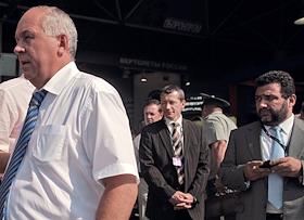 Генеральный директор Федерального государственного унитарного предприятия "Рособоронэкспорт" Сергей Чемезов (в центре) на Международном Авиакосмическом салоне "МАКС - 2007".