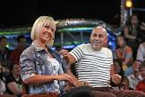 Продюсер Иосиф Пригожин (справа) и певица Валерия (слева) во время съемок программы "100 вопросов" на телеканале "ТВЦ".