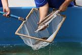 Астраханский научно-производственный центр по осетроводству "БИОС". Осетр в сачке.