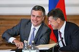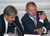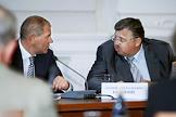 Руководитель Федерального агентства по рыболовству Андрей Крайний (слева) и Министр сельского хозяйства России Алексей Гордеев (справа) во время заседания Государственного совета России.
